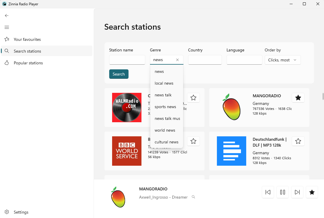 Browse through our carefully curated collection of popular and quality radio stations. You can refresh the curated database (via settings) anytime to get the latest additions and updates.